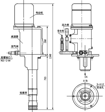 該電動(dòng)加油泵主要用于干油潤滑系統(tǒng)中,向干油潤滑裝置的貯油器內(nèi)補(bǔ)充潤滑脂。該泵為不帶貯油桶型,直接放在200L的油桶上,可以單獨(dú)操作,與相應(yīng)的電控裝置連接可以實(shí)現(xiàn)電動(dòng)潤滑泵系統(tǒng)的自動(dòng)補(bǔ)脂。該泵為內(nèi)藏式柱塞容積泵,運(yùn)行平穩(wěn),輸出壓力高。