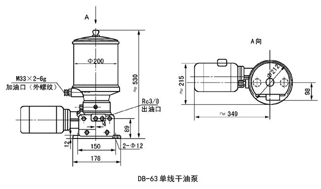 DB-63型單線干油泵適用于潤滑頻率較低、公稱壓力為10MPa、潤滑點在80點以下的單線小型干油集中潤滑系統(tǒng)中,通過片式給油器向各潤滑點供送 潤滑脂。