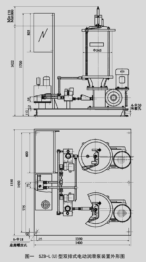 SZB-L(U)型雙排式電動潤滑泵裝置是由兩臺電動潤滑脂泵、換向閥、集成塊及管路附件等組成。在同一底座上安 裝有兩臺電動潤滑脂泵,一臺工作,一臺備用,雙泵可以自動切換,通過換向閥接通運轉(zhuǎn)著的泵的回路,不影響系統(tǒng) 的正常工作。兩臺泵也可以同時工作。它具有壓力高、流量大、遠距離輸脂、安全可靠等特點。貯油桶具有油位自動 報警系統(tǒng)。