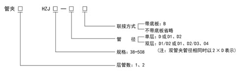 (2)單管夾標(biāo)注時(shí),在產(chǎn)品型號(hào)前寫(xiě)1;雙管夾標(biāo)注時(shí),在產(chǎn)品型號(hào)前寫(xiě)2。