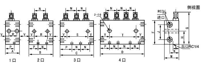 該系列雙線分配器給油口都在底部,分配器活塞正反向動作均從同一給油口排出潤滑脂,還可以從指示桿的動作直接觀察分配器的工作情況,同時還可通過調(diào)整螺釘在規(guī)定范圍內(nèi)方便地調(diào)整各個給油口的給油量。