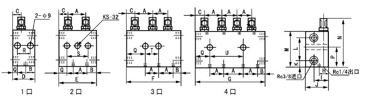 KS-32 的安裝孔只有一個;KS-62-1 的尺寸同 KS-62,但 B 尺寸位置的出油口無。
