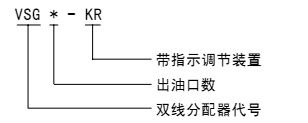 VSG-KR型雙線分配器上、下面均有給油口,分配器活塞正反向動作時分別從上面和下面的給油口排出一次。在相應(yīng)上、下給油口內(nèi)設(shè)有合二為一的排油結(jié)構(gòu),要改變奇數(shù)出油,只需調(diào)整導(dǎo)套的方向即可實(shí)現(xiàn)。還可以從指示桿的動作直接觀察分配器的工作情況,同時還可以通過調(diào)整螺釘在規(guī)定范圍內(nèi)方便地調(diào)整各個出油口的給油量。