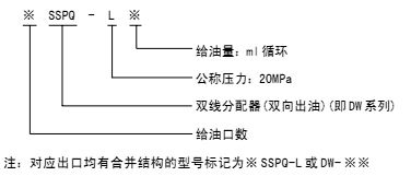 2、SSPQ(DW)型分配器對(duì)應(yīng)出口均需合并時(shí),訂貨時(shí)在 SSPQ 后加注下標(biāo)即 SSPQ1 或 DW- ※※ H;不合并時(shí)最后的 “H”不帶。 |