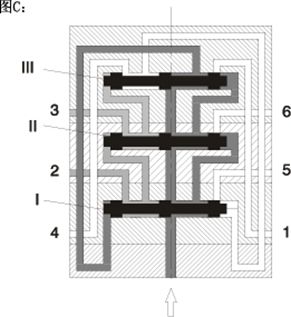 (III)換位后,潤(rùn)滑脂就直接進(jìn)入柱塞(I)的左側(cè)(見(jiàn)圖C),推動(dòng)