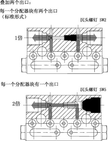 需要疊加兩個(gè)出口時(shí),就要連接分配器塊的兩個(gè)出口。