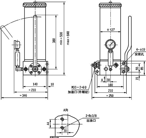 該型手動潤滑泵是一種由人力扳動手柄操作,排出潤滑脂的小型潤滑泵,可直接安裝于機(jī)器的壁板或機(jī)架上。與雙線給油器組成手動終端式集中潤滑系統(tǒng)。