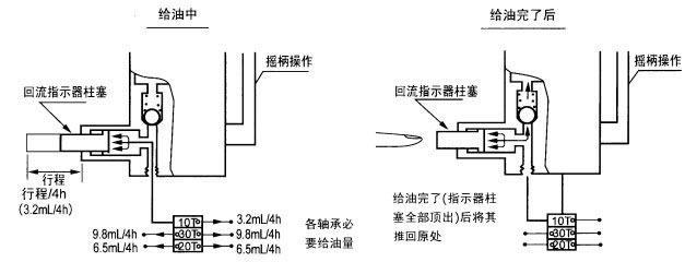 3、回油指示器的指示桿全部冒出,證明系統(tǒng)分配器已完成一個給油循環(huán)。