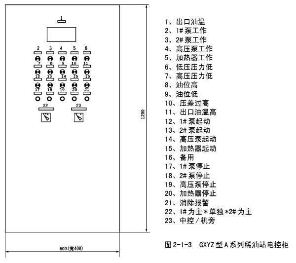 稀油站成套供貨時配有儀表和電控箱,以顯示運(yùn)行參數(shù)和實(shí)現(xiàn)稀油站自控、手控或報警。