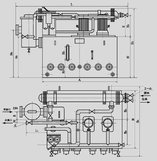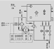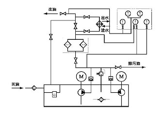 稀油站工作介質(zhì)粘度等級(jí)為N22~N320的工業(yè)潤(rùn)滑油,公稱壓力為0.4MPa,過濾精度0.08~0.12mm;冷卻水溫≤28℃;冷卻水壓力0.2~0.3MPa;冷卻器進(jìn)油溫度為50℃,溫降7~8℃;使用蒸汽加熱時(shí)蒸汽壓力為0.2~0.4MPa。