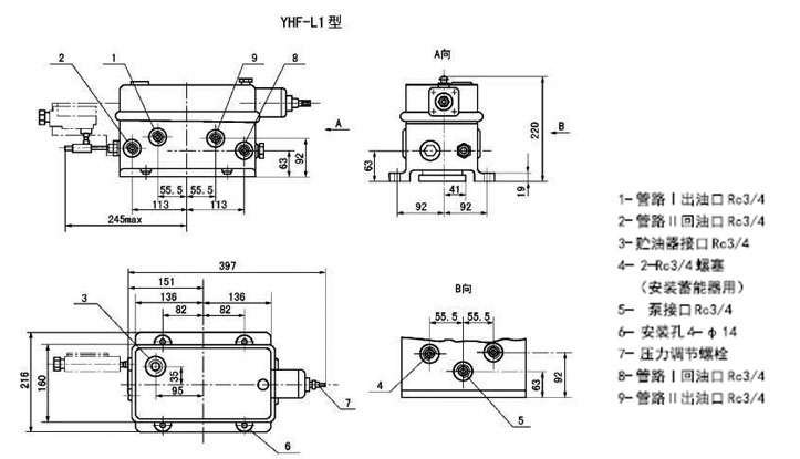 YHF-L1型閥與流量585mL/min的泵相配,安裝于底板上。YHF-L2型閥與流量60和195mL/min的泵相配,安裝于泵體上。