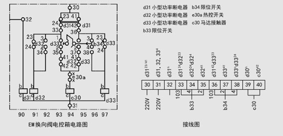 EM型電動(dòng)換向閥主要由電動(dòng)機(jī),減速機(jī)構(gòu),偏心連桿機(jī)構(gòu),強(qiáng)簧機(jī)構(gòu),二位四通閥,限位開關(guān),壓力表等組成。