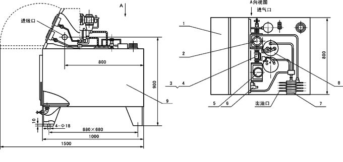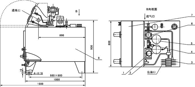 5 、電動泵 6 、空氣過濾器 7 、電控柜 8 、油箱