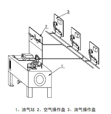 油氣操作盤由油氣混合塊、電磁換向閥、分線盒等主要元 件組成,油氣混合塊生成油氣輸入到潤滑點,電磁換向閥控制 該油路的通斷。